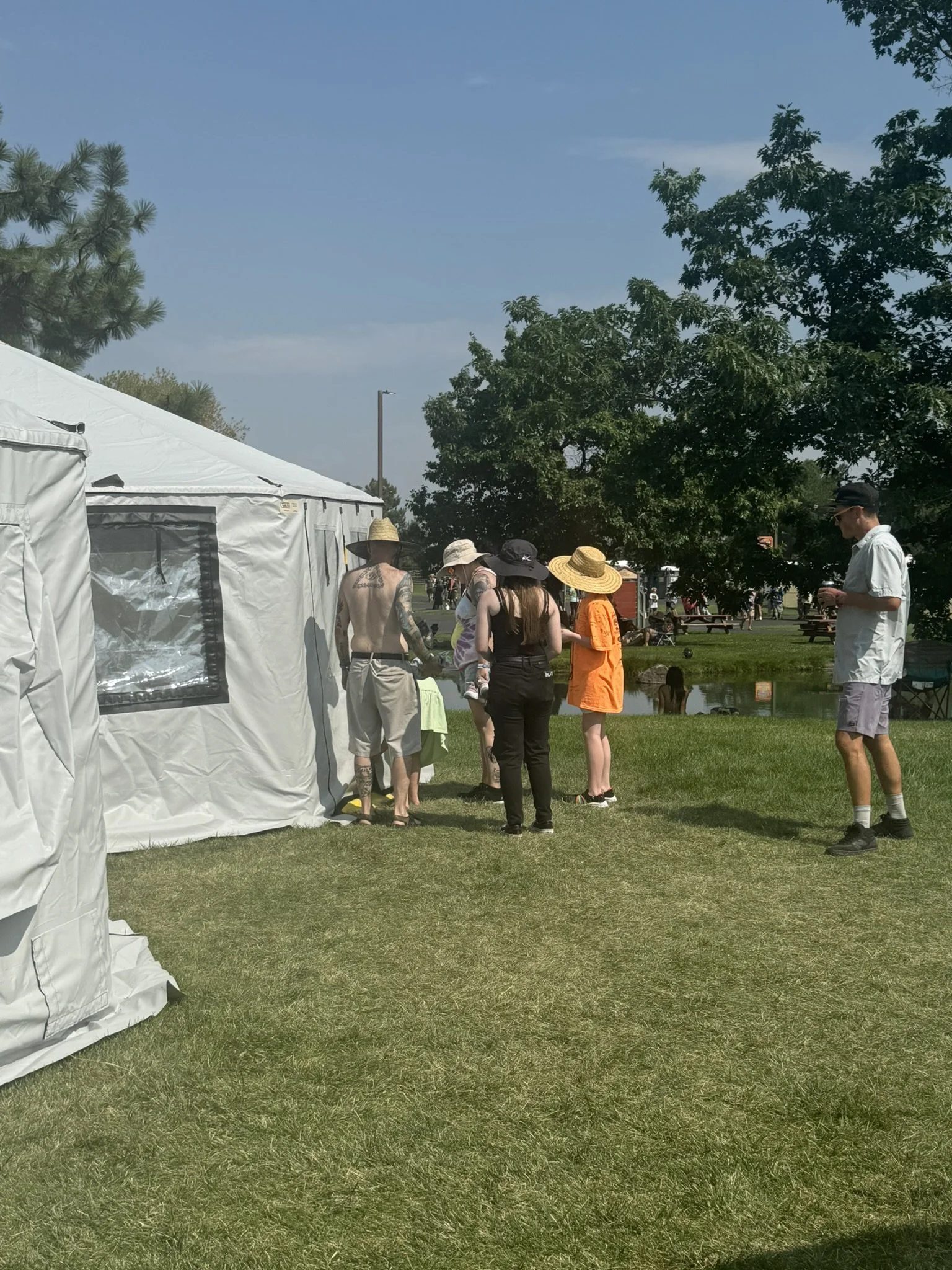 At Reggae Rise Up in Central Oregon (September 2025), two KulSun Complete shelters were set up for public use. Despite outdoor temperatures in the 90s and surface readings exceeding 100°F, each tent maintained a steady 69°F inside — offering essential relief for overheated guests, families, and medical-sensitive individuals.